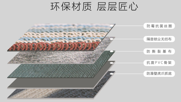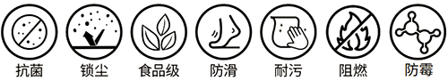 防滑、防霉、抗菌、鎖塵、吸水、阻燃、耐臟污、好打理;